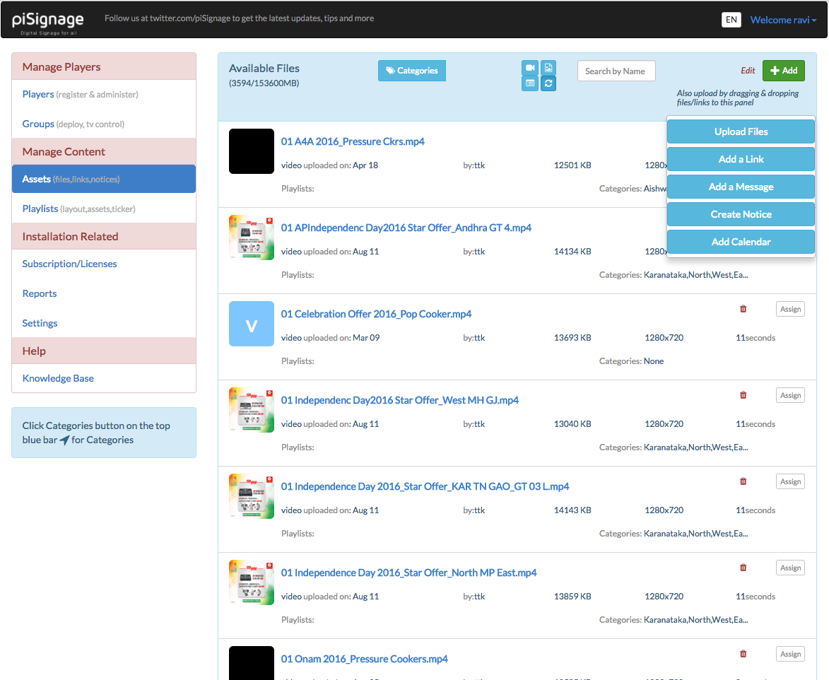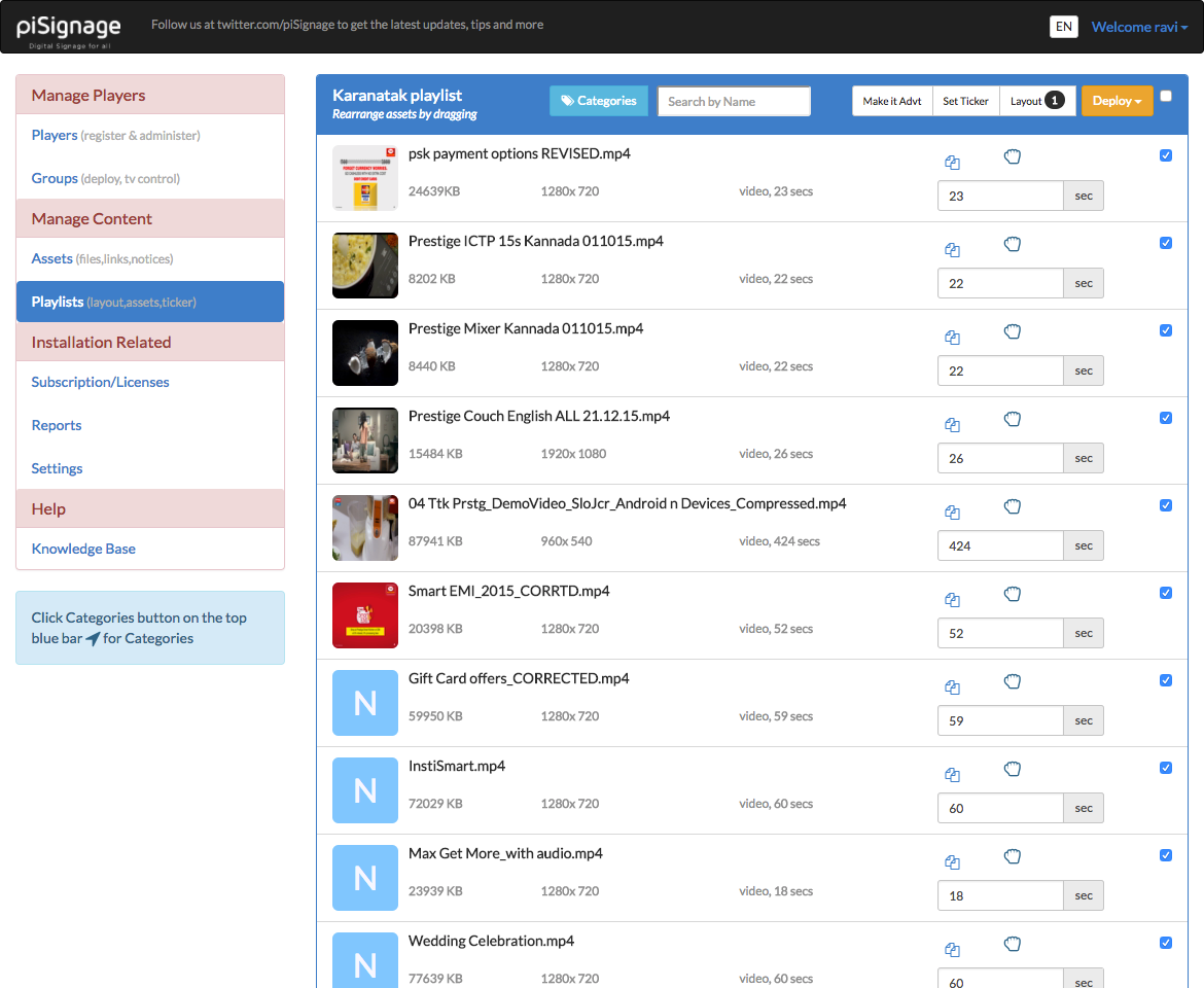 Many more features like scheduling synchronization across players, combining of playlists, firewall friendly,change playlist after completion of current content make piSignage a very apt-player for your signage needs.